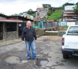 same time the rivers rose and flooded people from their homes. Two dozen lives were lost, including an entire family. The president declared a state of emergency, and government forces and the Red Cross swooped into most places to rescue the missing and take hundreds of people to emergency shelter. It was the worst disaster to hit Costa Rica for many years. This particular precario was hit late at night by a mudslide from above and a flood from below. Flor pointed to a spot on the bank, which looked like it was threatening to erode even further. It seems as if every place has its hellish anecdote: “Right there, there were two men standing on the path. And so they were talking, right? So, one man said to the other, well I’ll see you later, turned to go, and from out of nowhere the water hit him and he was swept away.”