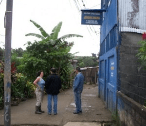 mere 5 minutes from ESEPA Bible College and Seminary where I teach, a cheerful place with well-lighted classrooms and happy students. Then we entered another planet. It is a village that takes up only 10 acres or so. Yet some 6 to 8 thousand people are crammed in. You have to cross a narrow foot bridge over a river in order to enter. While we waited for the pastor to meet us there, a couple of ladies spoke to us and pointed to the spot where I was standing. “This is where they murdered that taxi driver on Saturday night,” they said. “He drove too close, and they broke in to the car, dragged him out, took his clothes and car and everything and left him for dead.” “Right here?” I said. They nodded.
