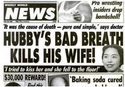 Ah, for the days when tabloids were clearly labeled and placed at the supermarket checkout. Then you could give a quick glance and find out when Elvis was spotted with what Venusian or how a Wolf-Boy was loose in the Maine woods.