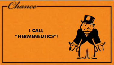 Now, I hardly believe that there is a moral equivalence between the message of the Bible and that of the Koran; I do insist that what we claim for our team the right to play—the Hermeneutics Card—we allow to other groups with their Scriptures.