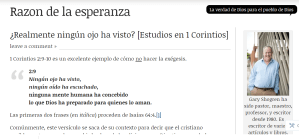 I originally thought of making my blog both English and Spanish, but I soon realized that it would be smoother to launch a second blog in Spanish. I asked my readers suggest names for it, and the winner was “Razón de la Esperanza”, based on 1 Peter 3:15 – “Always be prepared to give an answer to everyone who asks you to give the reason for the hope [razón de la esperanza] that you have.”
