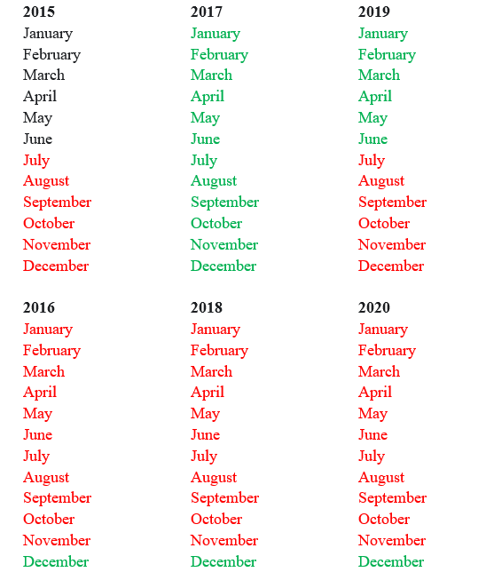 This would mean – let’s see – that we can cut out Jan-June of 2015; that over the 66 months between summer 2015 and the end of 2020, Jesus’ commandment would have been applicable (green light!) for 21 months, but naïve or suspended (red light!) for 45 months. Let’s look at the results: