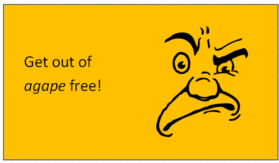 And for those who award themselves a “Get Out of Agape Free” card during Election Season?