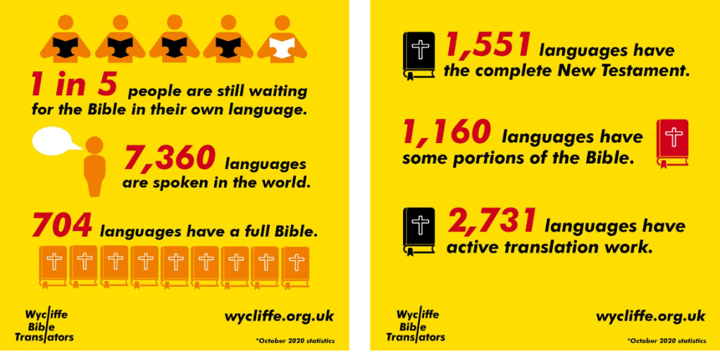 Three, some World Statistics. There are over 7000 languages in the world today. The full Bible has been translated into only 700 of them. Over 2000 languages have nothing of the Bible in them. None. No Psalm 23. No John 3:16. Zero. This is a stat that interests me, since I serve as a Bible advisor for Wycliffe Associates. Our goal is to help people groups around the world to produce the very first Bible translation in their own language. Many languages beyond English already have options: Bible Gateway lists six versions in Bulgarian! And three each for Croatian and Vietnamese! There are multiple Bible versions in the world’s major languages, for example, French, German, Russian, Portuguese, Spanish.