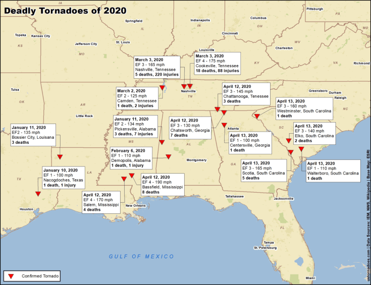 ✓  Massive tornados in the American Midwest. Fulfilled, there was a raft of killer tornados