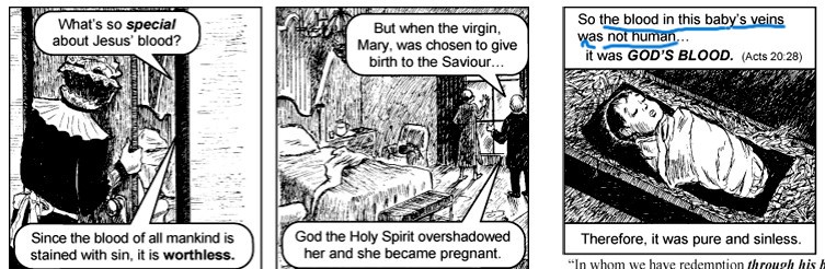 [3] I rarely use comic books as a footnote (!), but given that Chick Publications had been the source of so much false teaching (for example, that God inspired his Word solely in English in 1611), conspiracy theories, and general paranoia; but their the denial of the incarnation and thus a denial of redeption. See Chick.com: Accident, The.